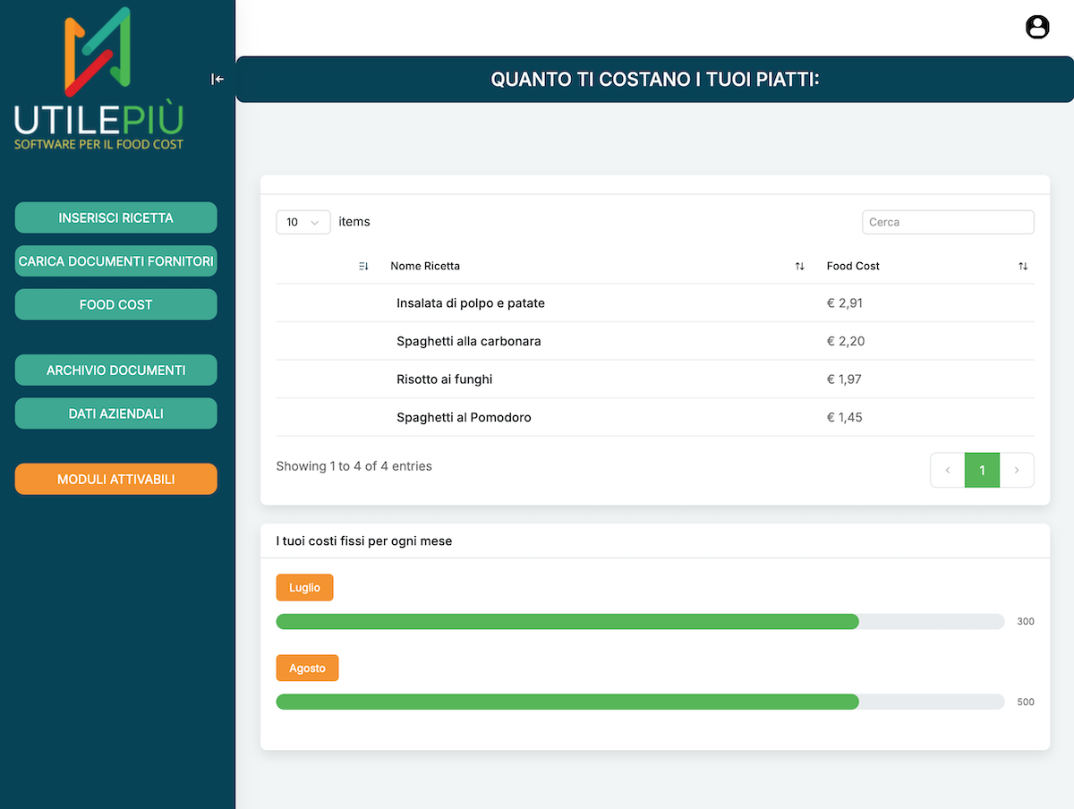 Con UtilePiù gestisci food cost, magazzino, ricette, comande e vendite in modo semplice e strutturato. Grazie all’integrazione con AI e OCR, fatture e dati si aggiornano in automatico, permettendoti di ridurre errori e guadagnare tempo.